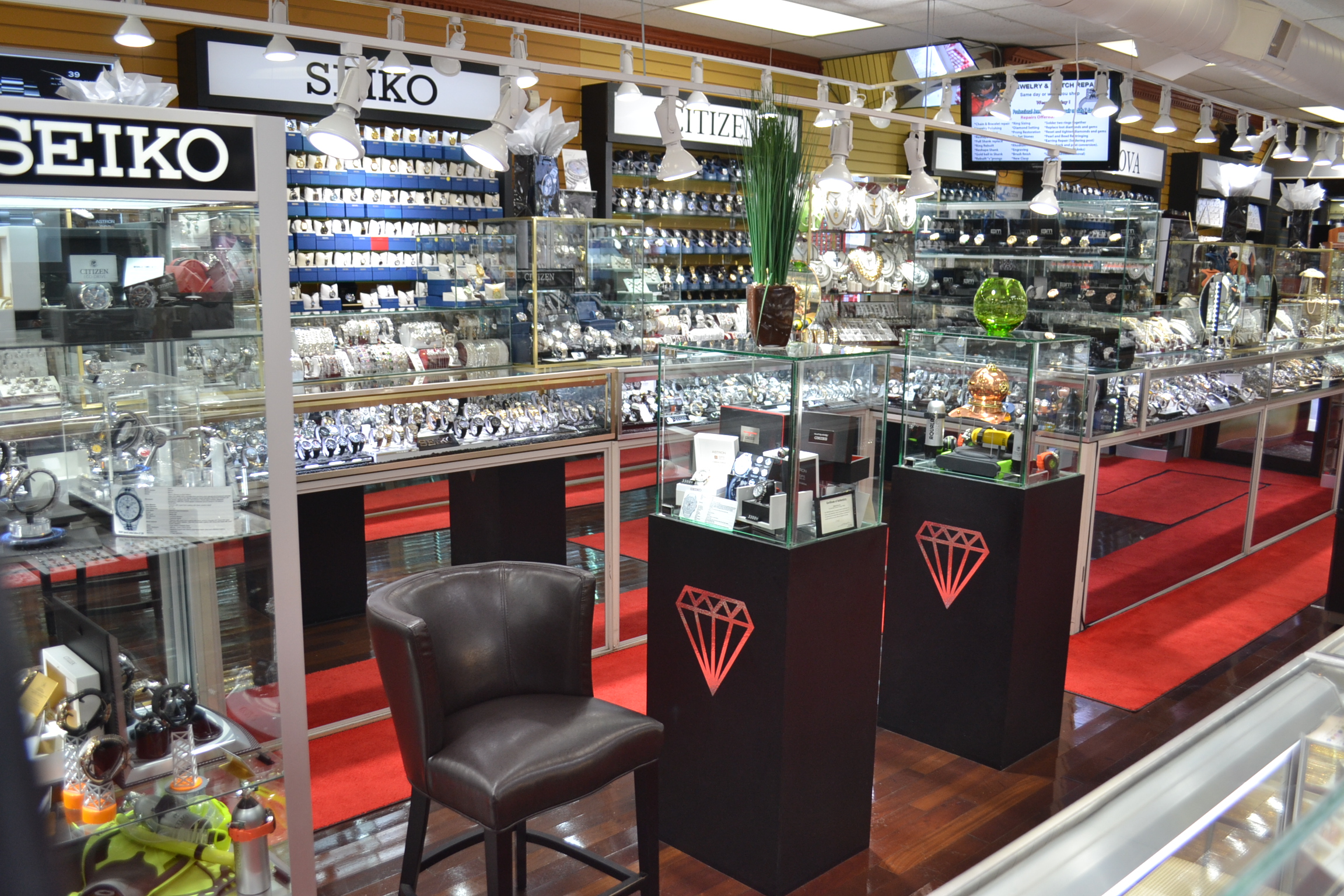 Our store offers an extensive selection of fine jewelry, including diamonds, gold, precious and semi-precious stones, and a wide range of name-brand watches to suit every occasion and personal style. Whether you’re celebrating a milestone or looking for something unique, we are here to help you find the perfect piece.