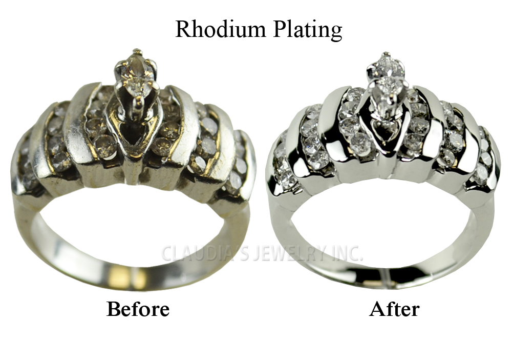 DOES YOUR WHITE GOLD RING LOOK DULL? RHODIUM PLATING WILL RESTORE ITS NATURAL SHINE AND SPARKLE. WHITE GOLD RHODIUM PLATE
