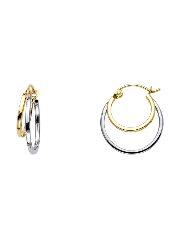 14K 2T 2 Line Hollow Hoop Earrings (18mm)