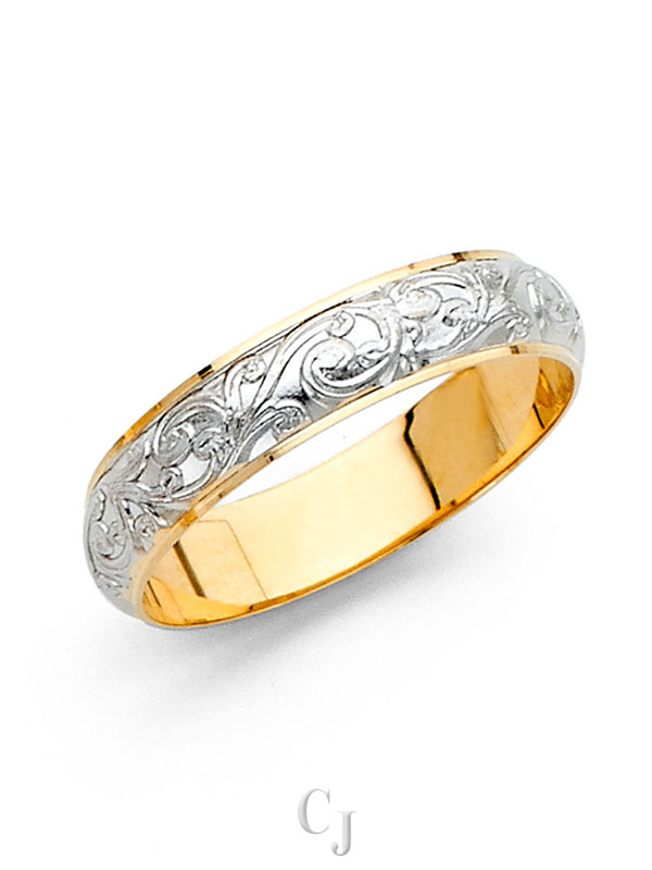 14K 2T 4mm Engrave Dom Wedding Band