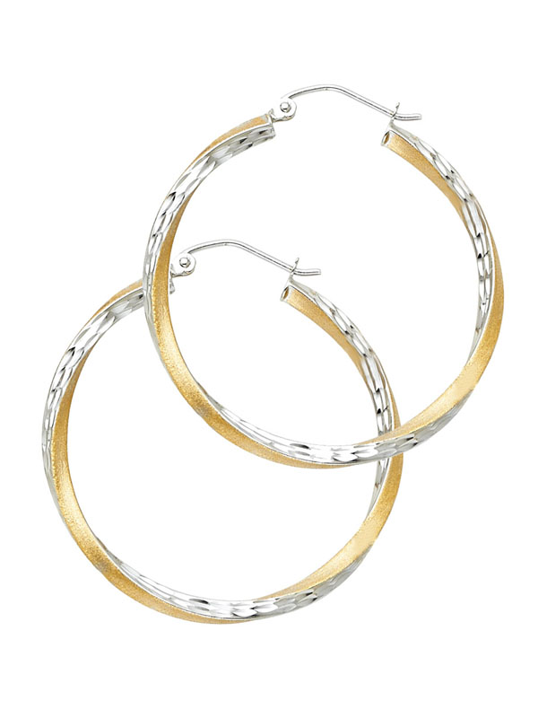 14K 2T SF DC 2.6mm Swirl Hoop Earrings (30mm)