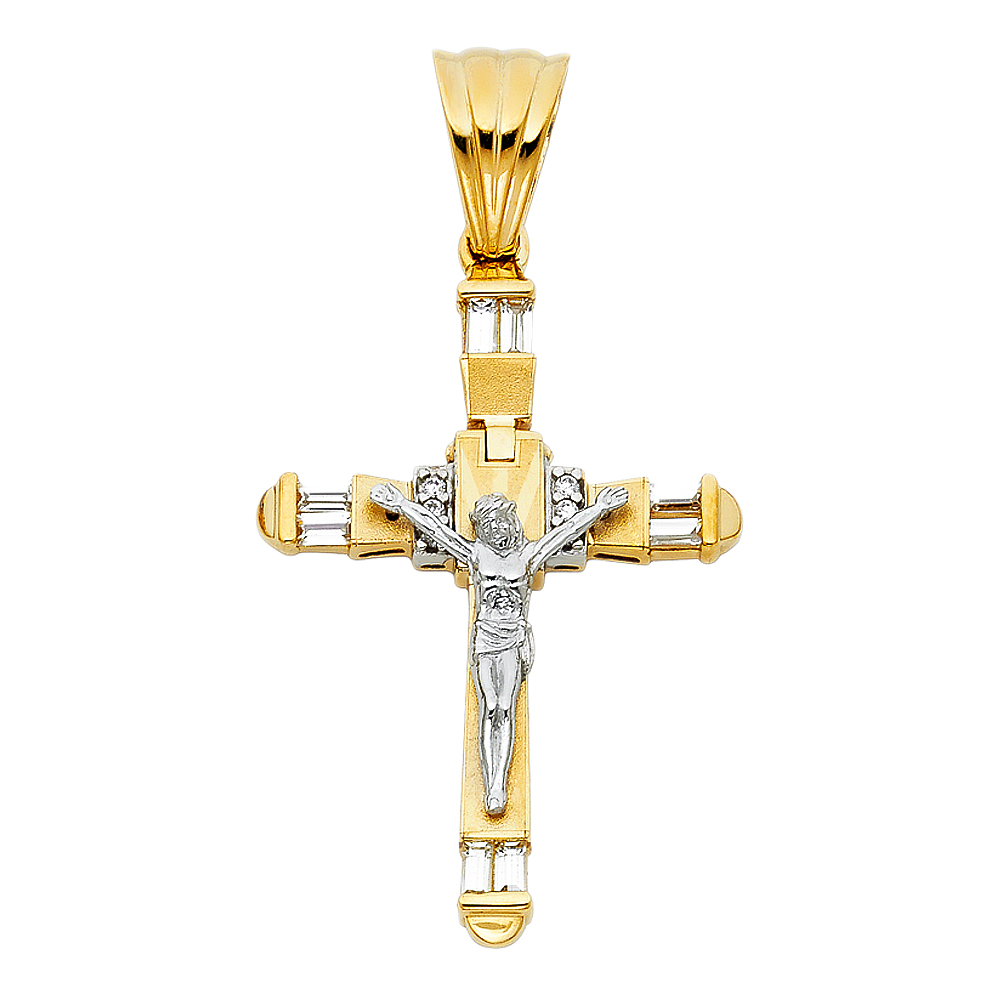 14K 2Tone CZ Crucufix Cross Pendant