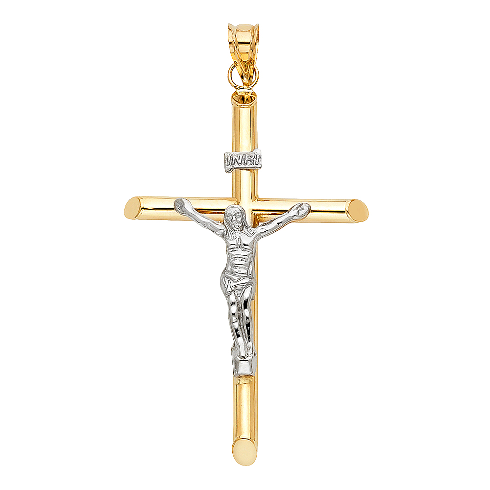 14K 2Tone Hollow Round Tube Crucifix