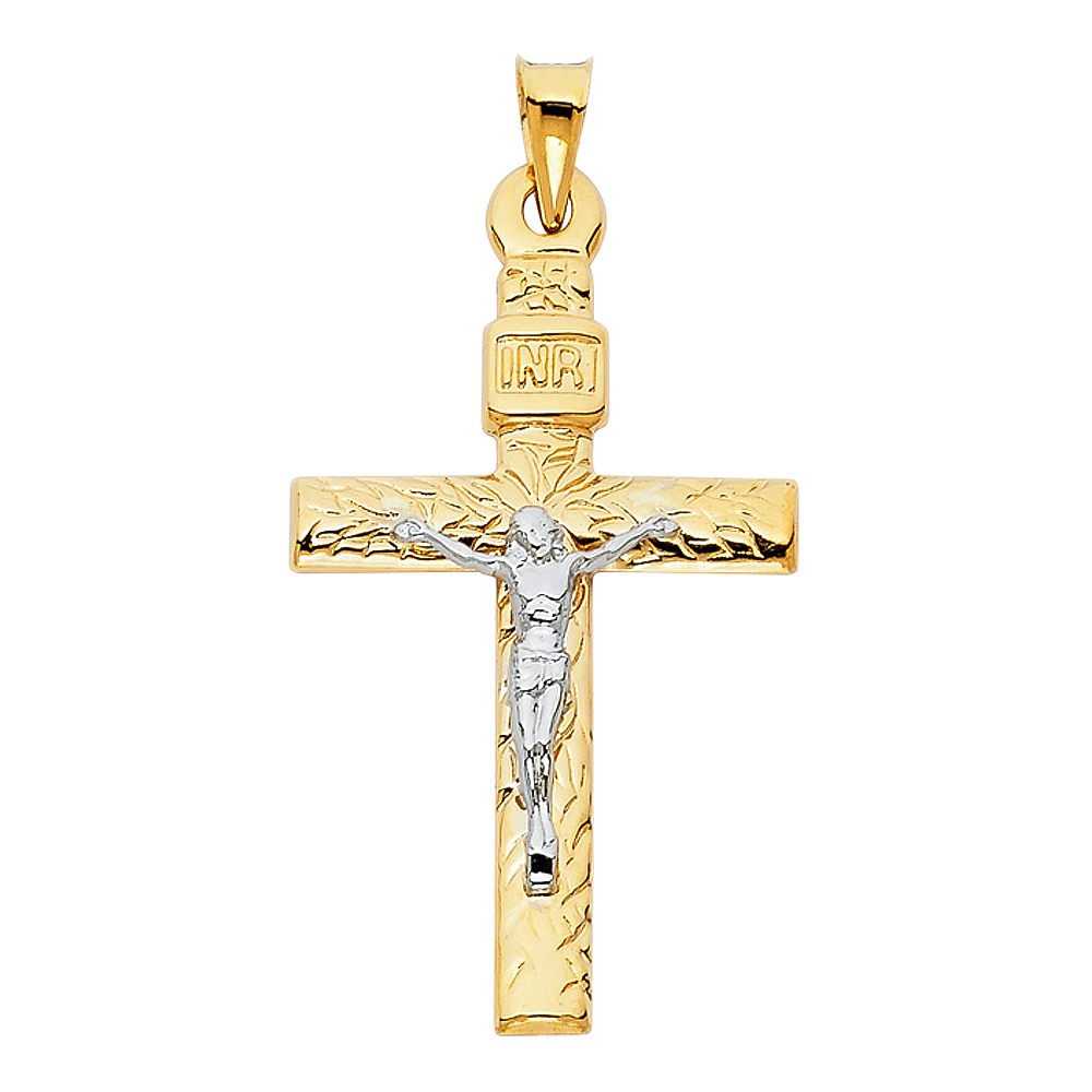 14K 2Tone Mashed Crucifix Pendant
