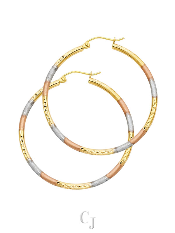 14K 3C 2mm Round Tube DC Round Hoop Earrings (35mm)