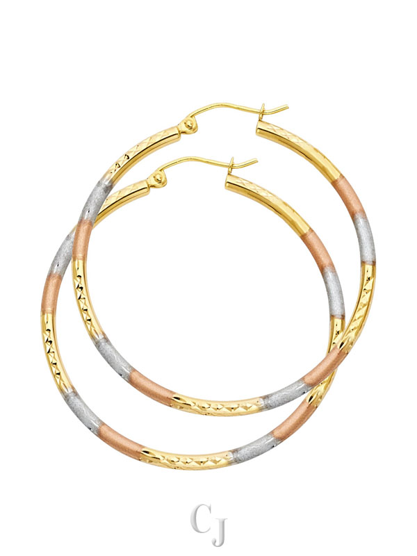 14K 3C 2mm Round Tube DC Round Hoop Earrings (40mm)