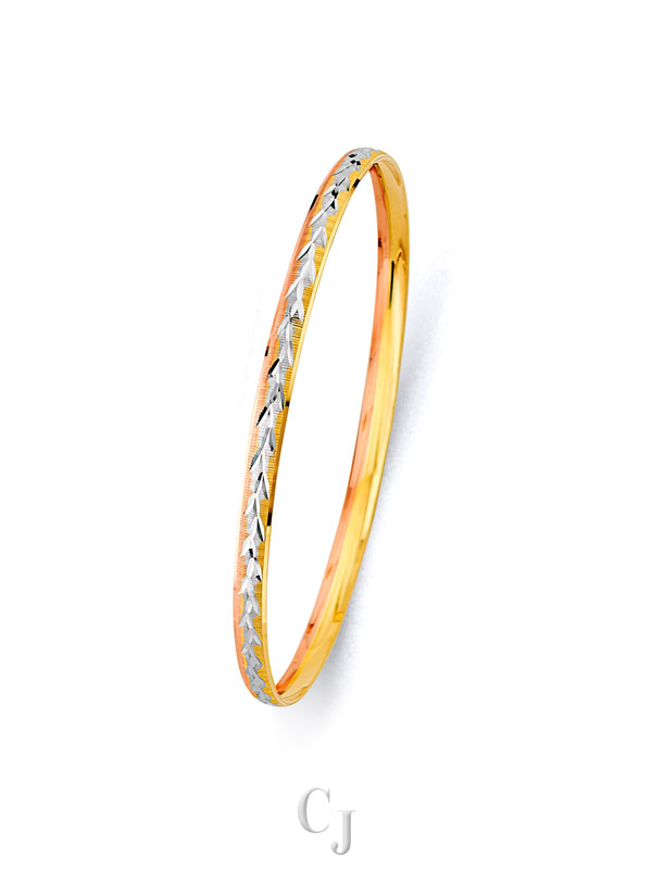 Make a statement with our 14K tri-color bangles, featuring a beautiful blend of white, yellow, and rose gold. These bangles offer a unique and elegant style that complements any look. Wear them solo or stacked for a bold, timeless touch.