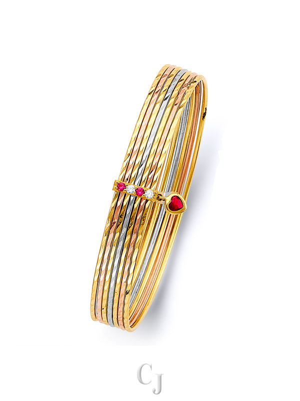 Make a statement with our 14K tri-color bangles, featuring a beautiful blend of white, yellow, and rose gold. These bangles offer a unique and elegant style that complements any look. Wear them solo or stacked for a bold, timeless touch.