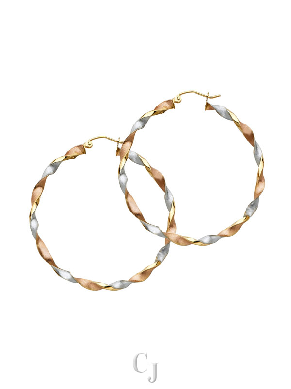 Crafted in 14K yellow, white, and rose gold, these Tri-Color Earrings from Claudia’s Jewelry Inc. offer a distinct yet timeless style. Perfect for adding a touch of elegance and color to any jewelry collection.