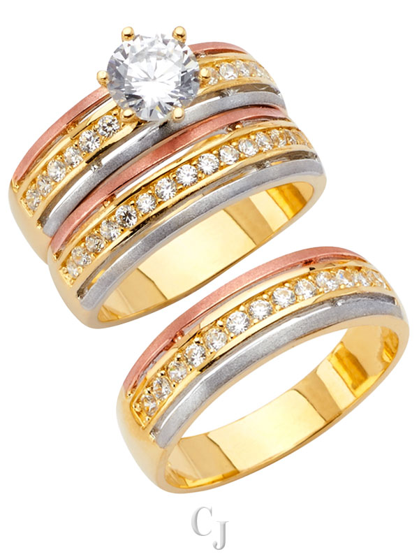 14K 3C CZ Engagement Ring/Trio Set