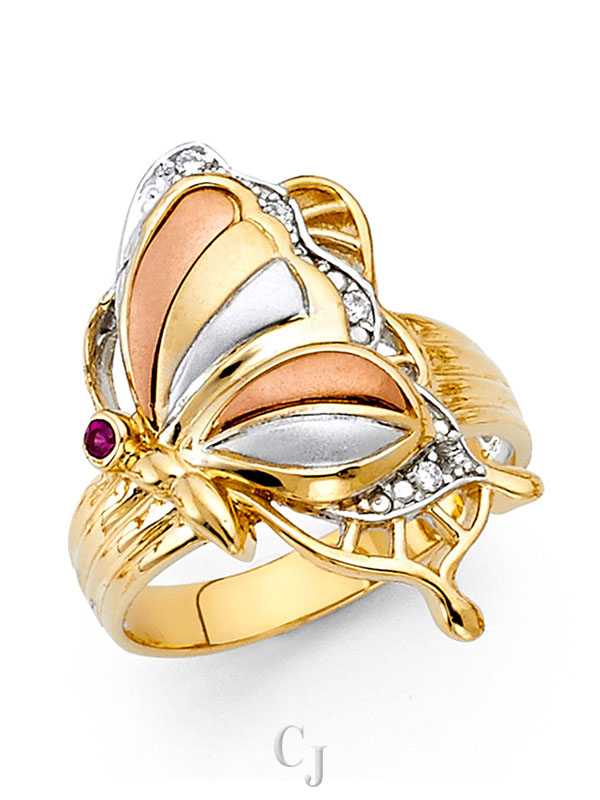 14K 3C CZ Fancy Butterfly Ring