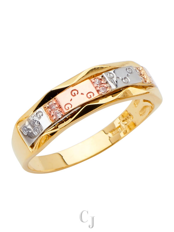 14K 3C CZ Men’s Wedding Band