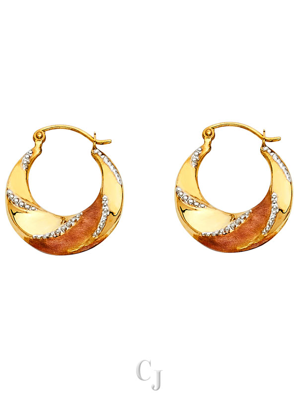 14K 3C Fancy Hollow Hoop Earrings