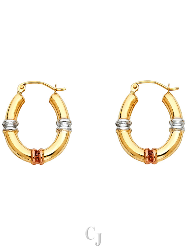 Crafted in 14K yellow, white, and rose gold, these Tri-Color Earrings from Claudia’s Jewelry Inc. offer a distinct yet timeless style. Perfect for adding a touch of elegance and color to any jewelry collection.