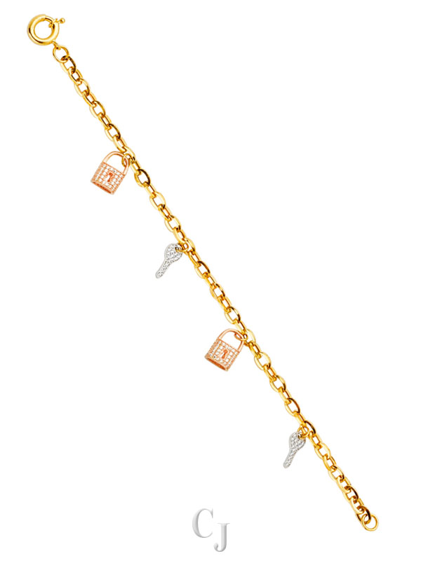14K 3C Key & Lock CZ Bracelet