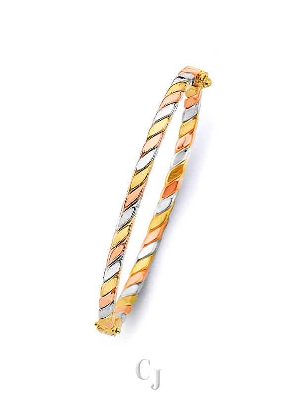 Make a statement with our 14K tri-color bangles, featuring a beautiful blend of white, yellow, and rose gold. These bangles offer a unique and elegant style that complements any look. Wear them solo or stacked for a bold, timeless touch.