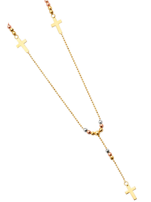 14k Gold Tri-Color 3mm 2.5mm Ball Fancy Rosary Necklace
