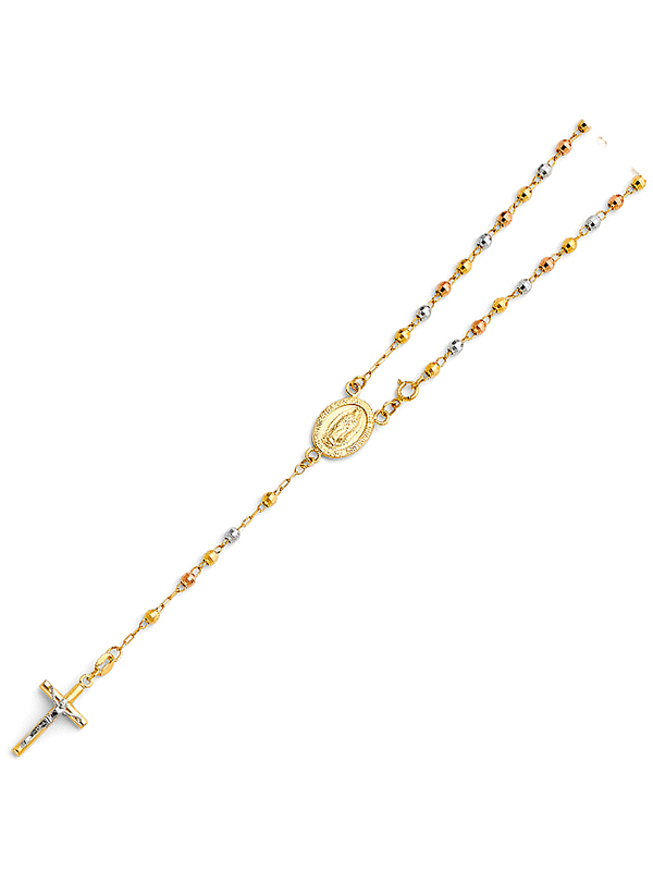 14k Gold Tri-Color 3mm Disco Ball Rosary Necklace – 18″