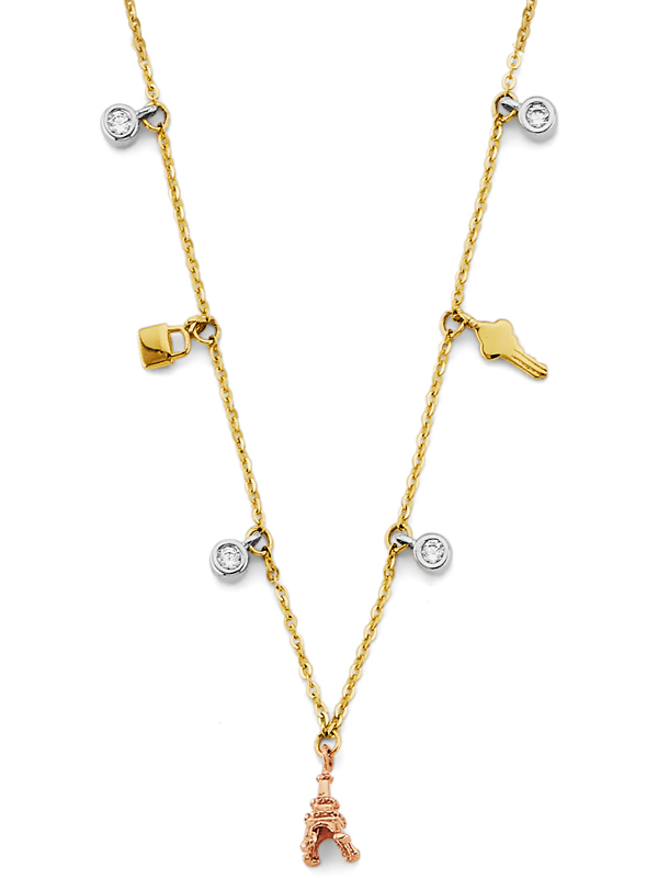 14k Gold Tri-Color Charm CZ Necklace