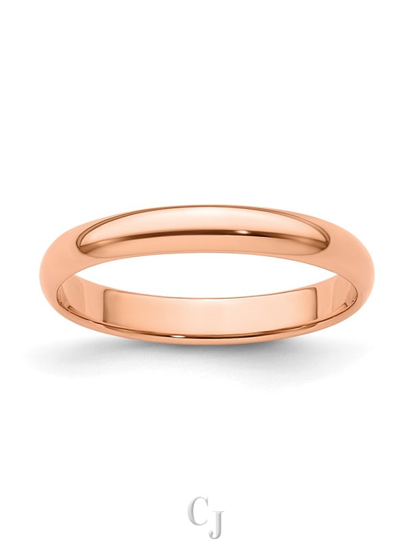 14k Rose Gold 3mm Lightweight Half Round Wedding Band