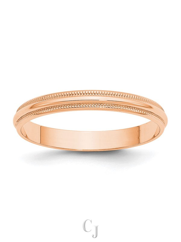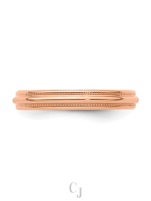 14k Rose Gold 3mm Lightweight Milgrain Half Round Wedding Band