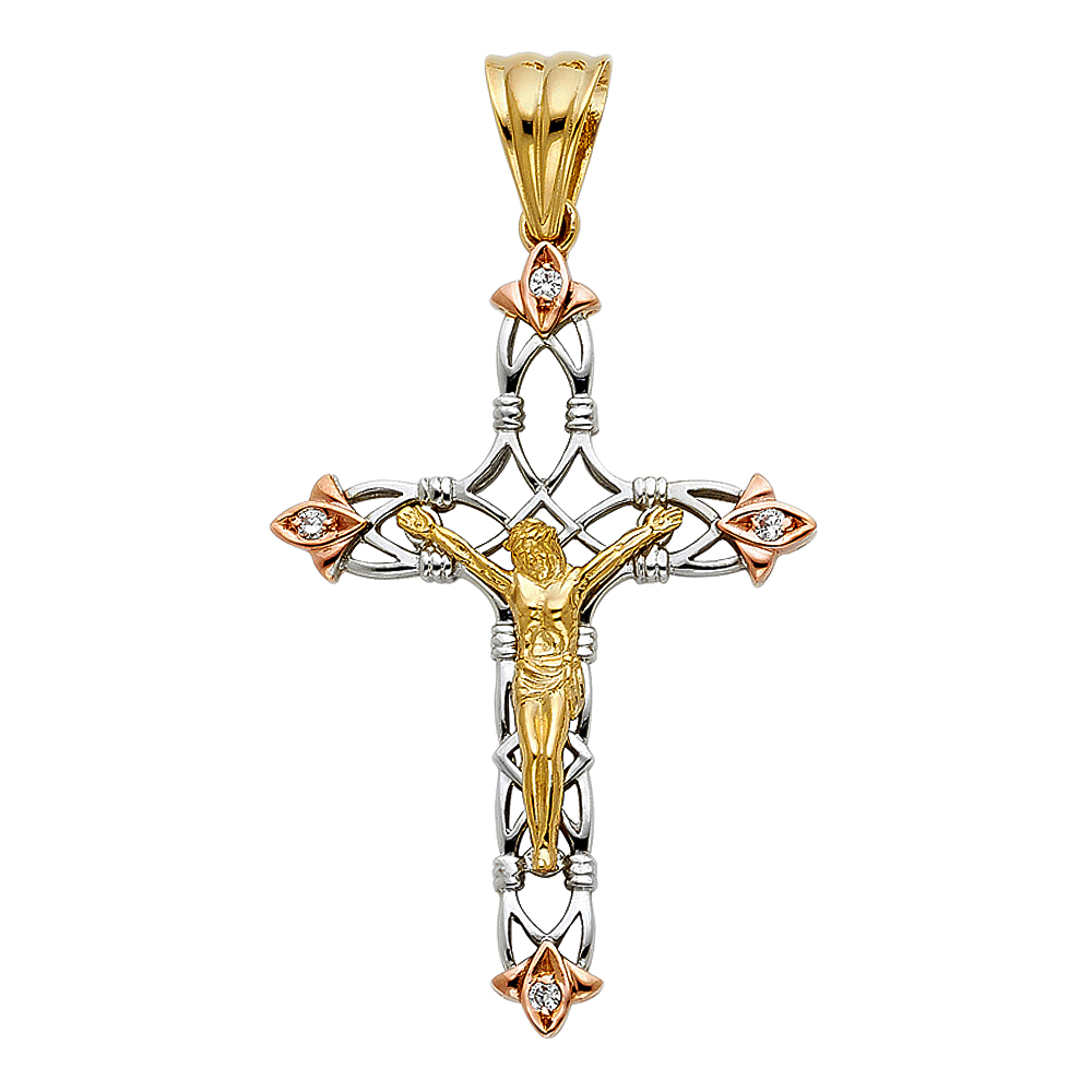 14K Tri-Color CZ Fancy Crucufix Pendant