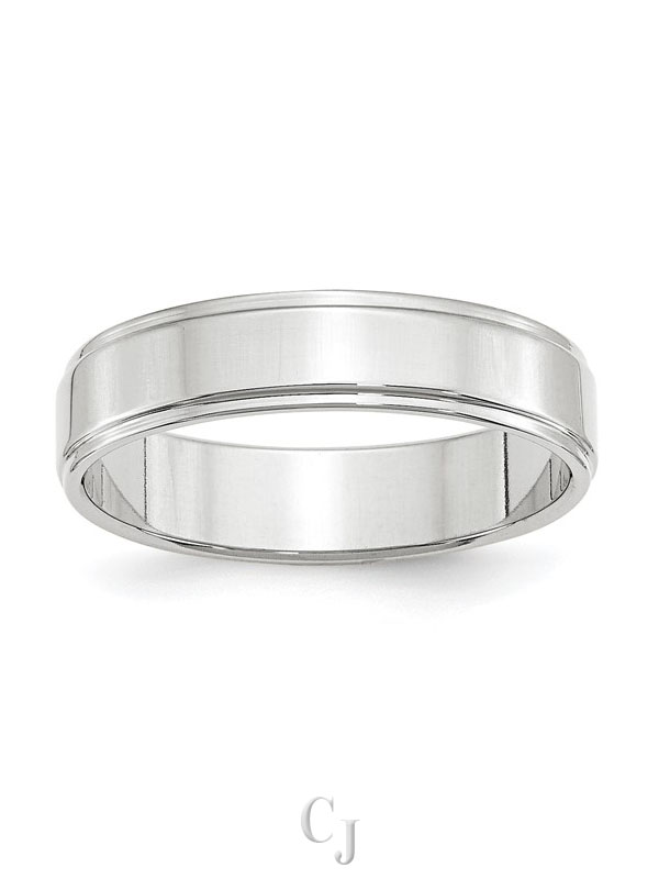 14k White Gold 5mm Flat with Step Edge Wedding Band