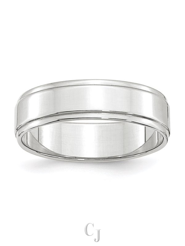 14k White Gold 6mm Flat with Step Edge Wedding Band