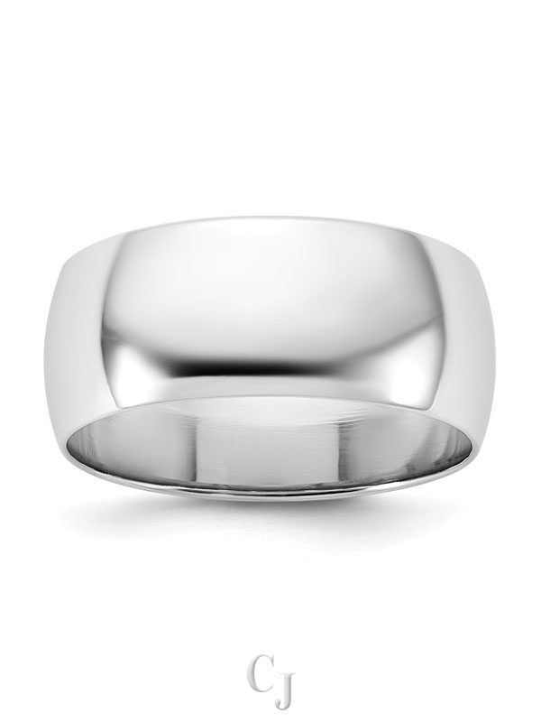 14k White Gold 8mm Lightweight Half Round Wedding Band