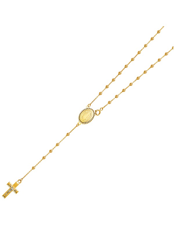 14K Yellow Gold 2.5mm Moon Cut Ball Rosary Necklace