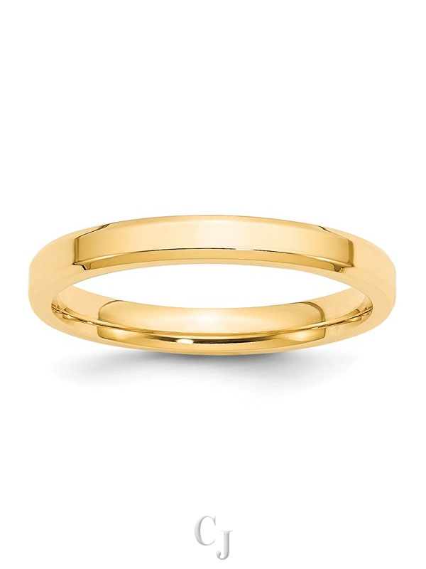 14k Yellow Gold 3mm Beveled Edge Comfort Fit Wedding Band