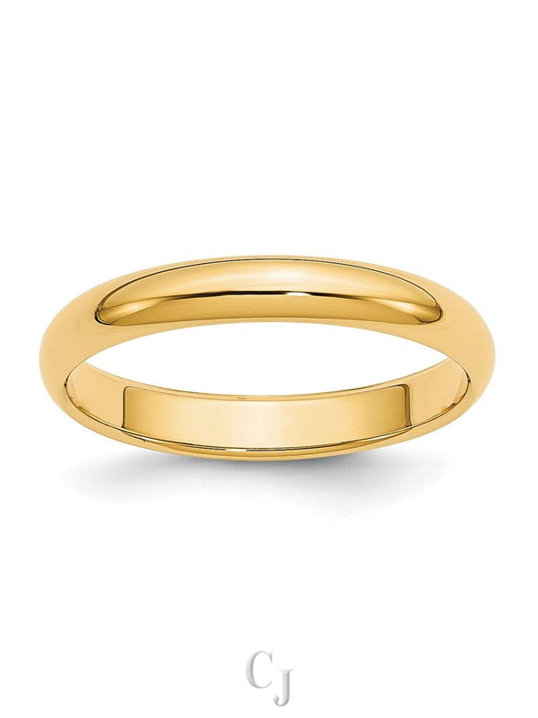 14k Yellow Gold 3mm Lightweight Half Round Wedding Band