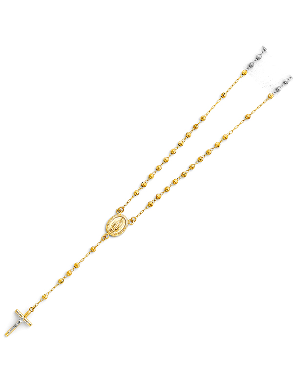 14K Yellow Gold 3mm Moon Ball Rosary Necklace – 18″