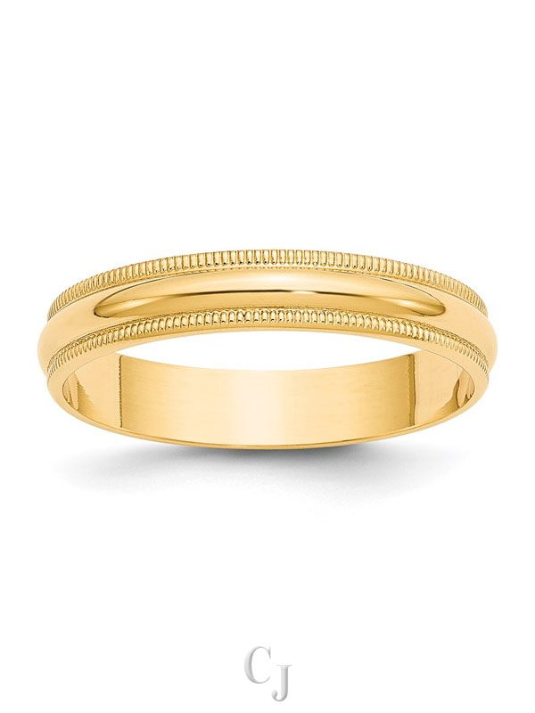 14k Yellow Gold 4mm Lightweight Milgrain Half Round Wedding Band