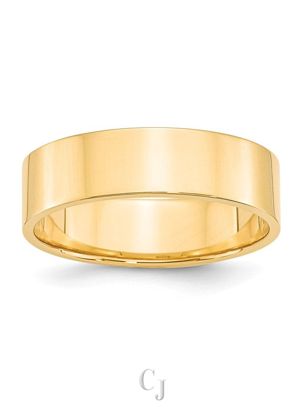 14k Yellow Gold 6mm Lightweight Flat Wedding Band