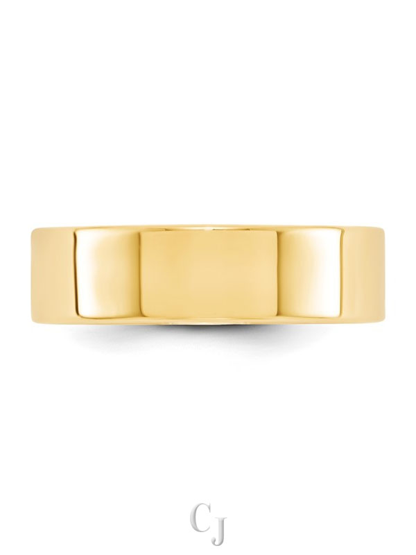 This 14K yellow gold wedding band features a bold 6mm flat profile with a clean, modern design. The lightweight construction ensures a comfortable fit for everyday wear, while the polished finish adds timeless shine. Ideal for those who want a sleek, stylish band with classic appeal.