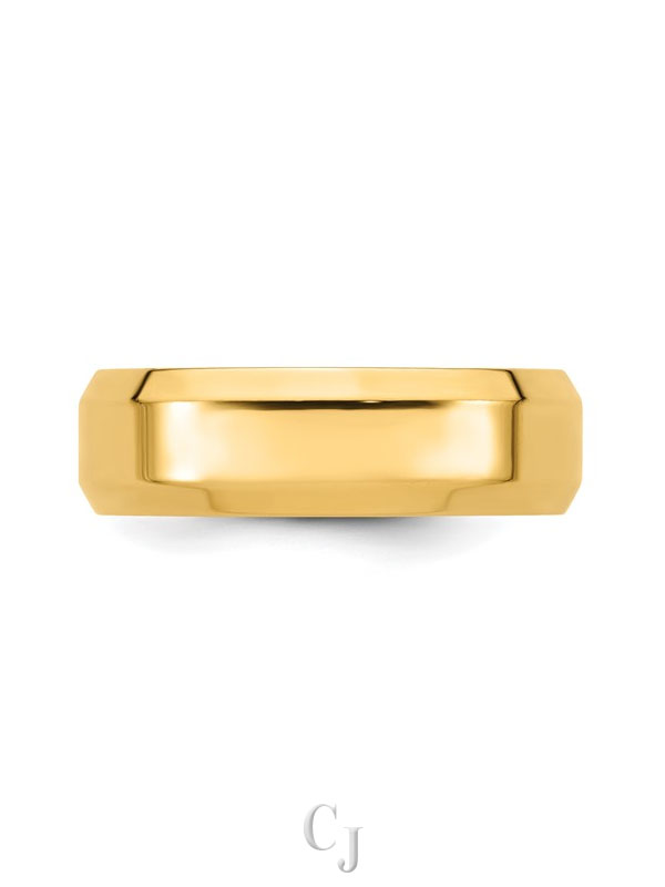 14k Yellow Gold 7mm Beveled Edge Comfort Fit Wedding Band