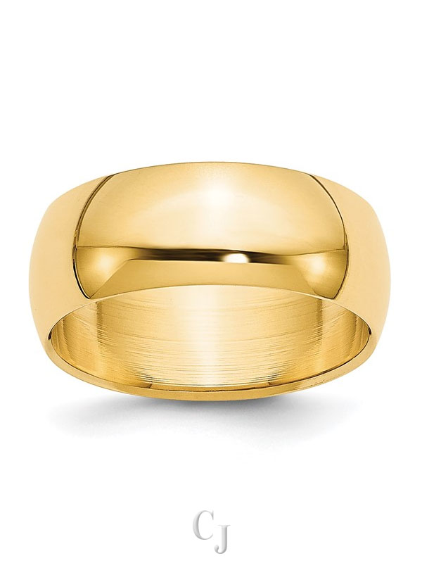 14k Yellow Gold 7mm Lightweight Half Round Wedding Band