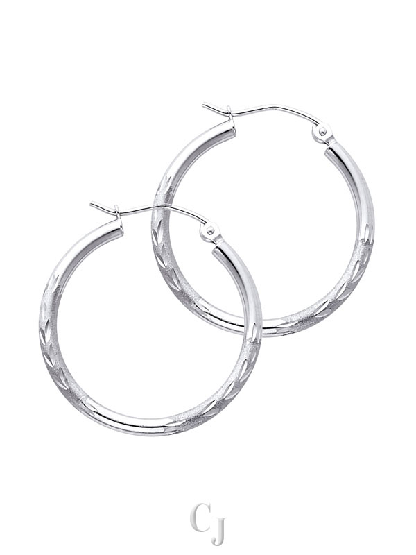 14KW 2mm Budded DC Round Tube Hoop Earrings (25mm)