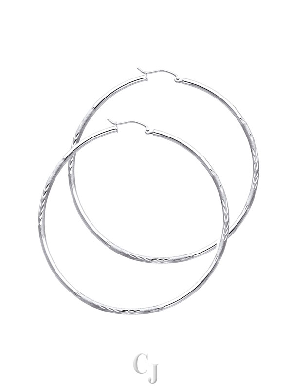 14KW 2mm Budded DC Round Tube Hoop Earrings (55mm)