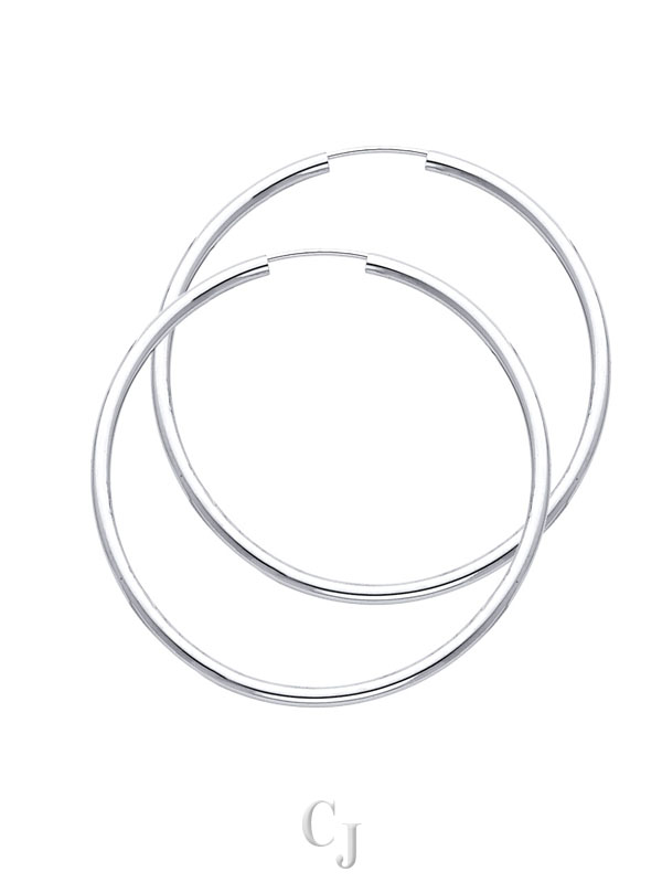 14KW 2mm Round Tube Polished Endless Hoop Earrings (45mm)