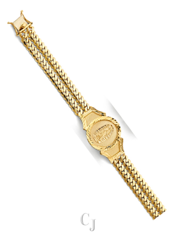 14KY 2Line Cuban Guadalupe Frame ID Bracelet