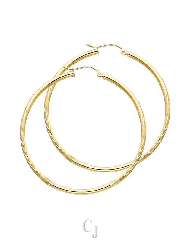 14KY 2mm Budded DC Round Tube Hoop Earrings (45mm)