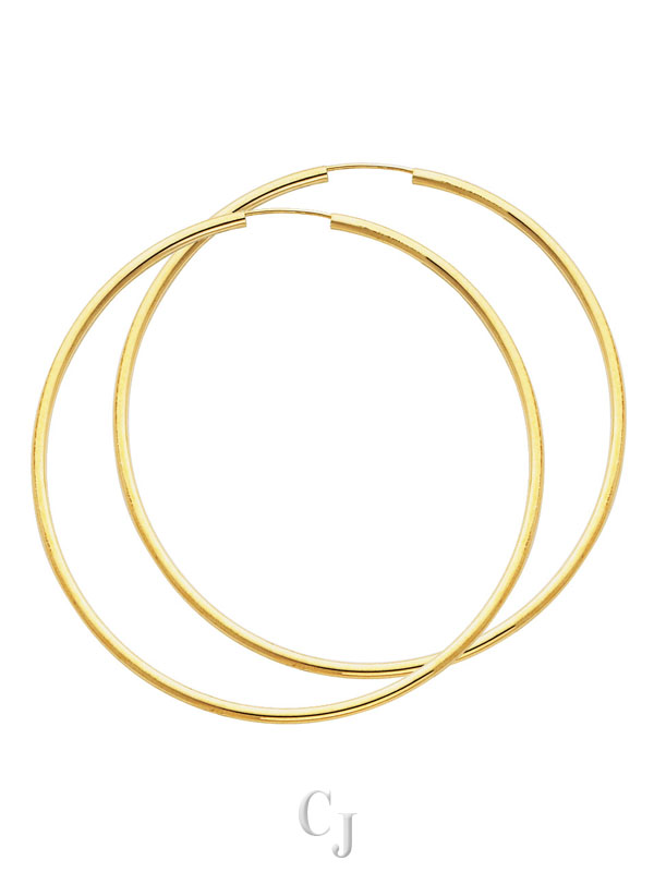14KY 2mm Round Tube Polished Endless Hoop Earrings (65mm)