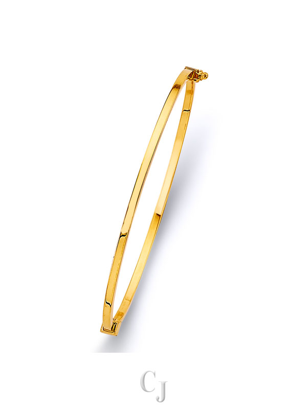 14KY 2mm Square Plain Hollow Oval Bangle – 7″