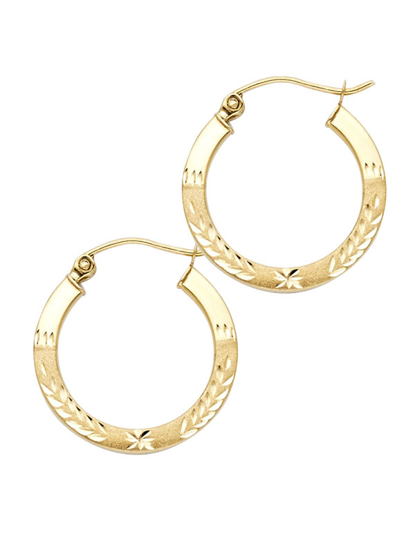 14KY Budded DC Square Tube Hoop Earrings (20mm)