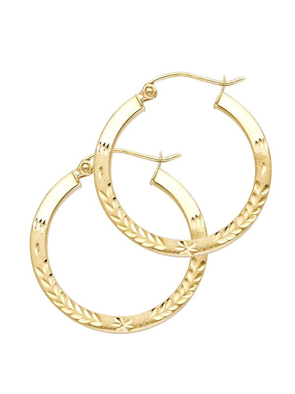 14KY Budded DC Square Tube Hoop Earrings (25mm)