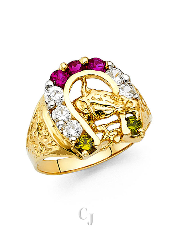14KY CZ Lucky Horse Shoe Men’s Ring