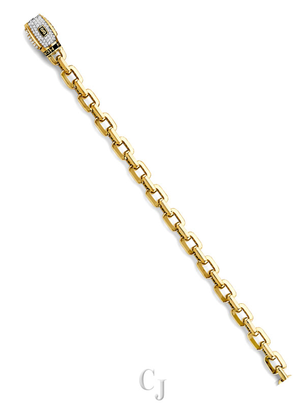 14KY Fancy Hollow Link Monaco Bracelet with CZ Lock