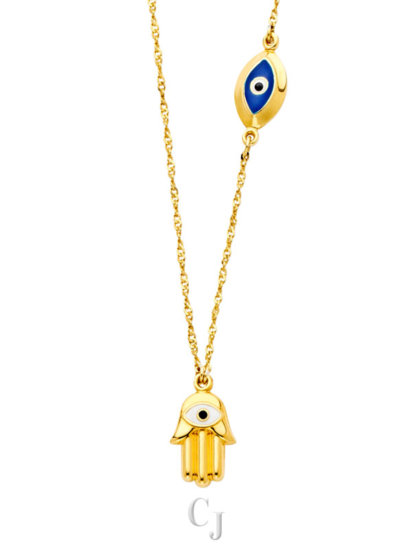 14KY Hamsa + Evil Eye Necklace